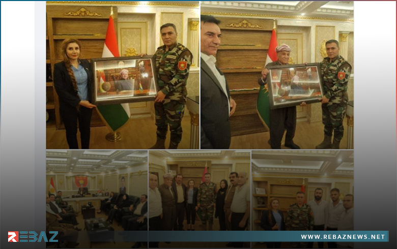 وقدمت عضو اللجنة المركزية للحزب الديمقراطي – سوريا PDK-S ومسؤولة التنظيم في زاخو هيام عبدالرحمن باسم الوفد صورة فخامة المرجع الكوردستاني الرئيس مسعود بارزاني هدية للعميد دلوفان روباري .