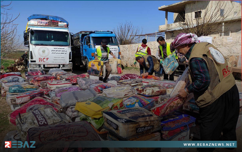 تستمر مؤسسة بارزاني الخيرية في توزيع المساعدات الإنسانية على العوائل المتضررة من جراء الزلزال في عفرين وجنديرس بكوردستان سوريا.